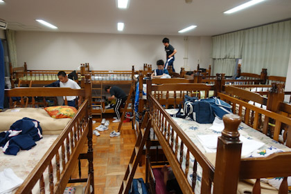 レクリエーション大会の後は、部屋でシーツをひいたり就寝準備をし、22時に消灯しました。みんな疲れたのか、静かに寝ています。