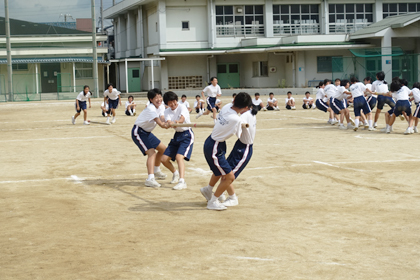 今日は、各学年2時間ずつの体育大会学年練習を行いました。1年生は棒引きの予選会を行いました。結果は1位1組、2位4組、3位3組、4位2組でした。
