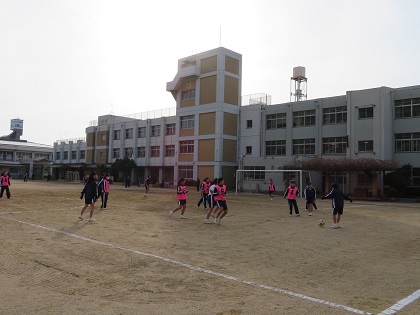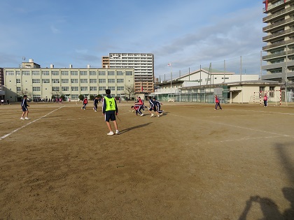 3年生は球技大会を行いました。種目はサッカーです。寒い中でしたが、みんな元気に試合に挑んでいました。試合結果は、男子の部が2組、女子の部は4組が優勝しました。