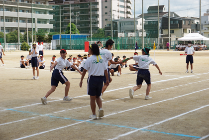 最後の種目は男女混合リレーです。男子、女子とバトンを渡しながらのリレーです。