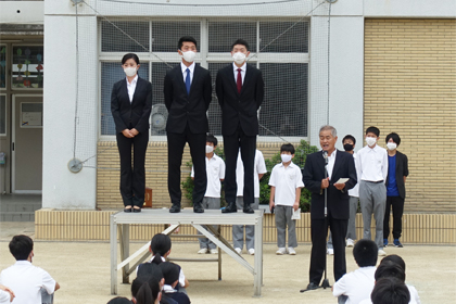 本日から26日(月)までの3週間、教育実習生が実習に来ています。科目は保健体育が2名、社会科が1名です。みなさんよろしくお願いします。