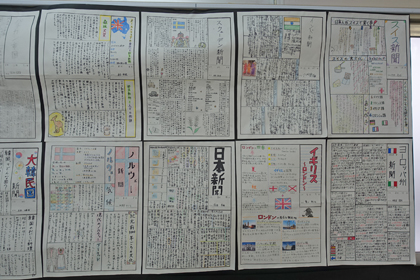 続いて各教科の展示です。国語科では書写と俳句、社会科では新聞作りをしました。