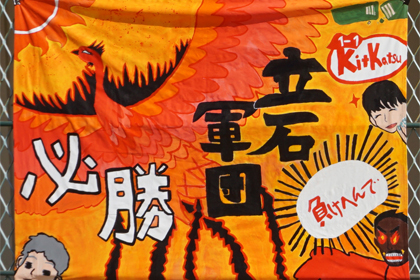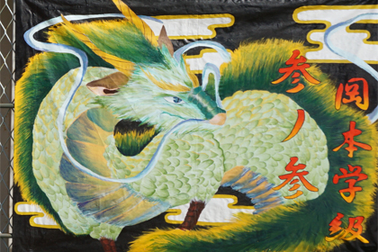 体育大会で作成した学級旗の投票を、文化発表会で行いました。集計の結果、1年1組、2年4組、3年3組の旗が選ばれました。本日の全校集会で表彰を行いました。