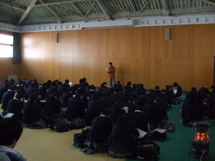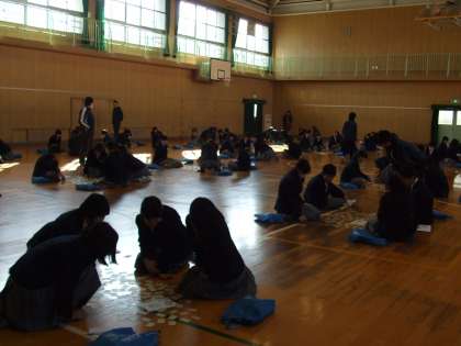 当日は通常の授業のほかに、授業1年生は2限〜3限に体育館で百人一首大会が行われ、3年生は格技室で3限に私立高校の出願にあたっての事前指導が行われました。