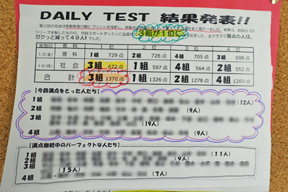 2年生では、期末テストに向けて、テスト範囲の問題を小テストにして解答する、デイリーテストの取り組みがスタートしています。