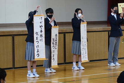 本日、終業式を行いました。終業式のあとは、各学年で冬休みの生活についての学年集会が行われました。