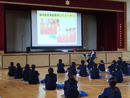 1年生を対象に、歯と口の健康教室を実施しました。健康な歯を維持するために、学んだことを実践してください。