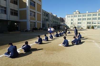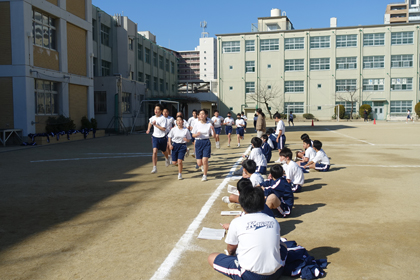 今年度は、住之江公園で行っているマラソン大会を校内で実施しました。グランド15周(3km)の記録をとりました。みんな一生懸命走りました。