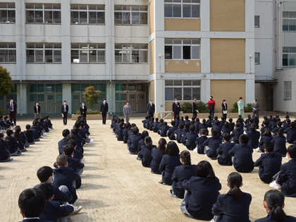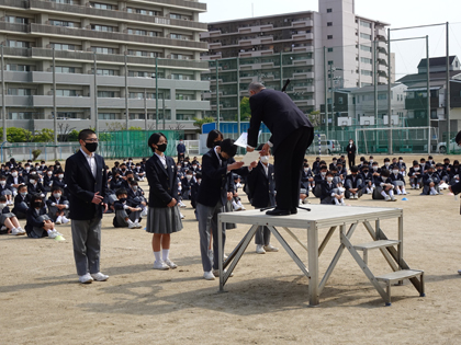 今日は始業式でした。始業式のあとに、新しく来られた先生方の紹介が行われ、前期生徒会の認証式も行われました。また、新入生と、2・3年生との対面式も行われ、新入生の代表が挨拶の文章を読み上げました。