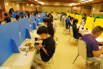 高山市を出発し、ホテルに戻って来ました。ただいま夕食を食べています。この後は、前日に続き、レクリエーション大会をします。