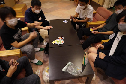 レクリエーション大会も終わり、順次入浴などを行いました。入浴後は、部屋でくつろいだり、歓談をしています。明日はナガシマスパーランドに向かいます。