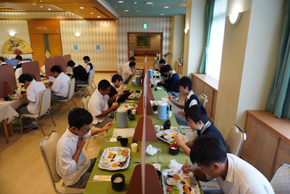 修学旅行3日目、今日はナガシマスパーランドに向かいます。画像は朝食の様子です。