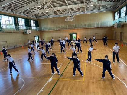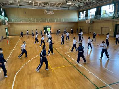 1,2年生は一足先にダンスの授業が始まっています。まずは基本のステップから。最終的にどんなダンスになるのか楽しみです。