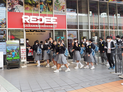 2年生は本日、校外学習を行いました。バスに乗車し、エキスポシティーにある日本最大級のデジタル教育施設REDEEに向かいました。