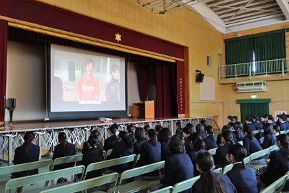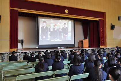 生徒会主催で、部活動のメンバーが卒業する3年生の先輩に向けて、動画でメッセージを送りました。各部活で趣向を凝らして、楽しい内容となっていました。