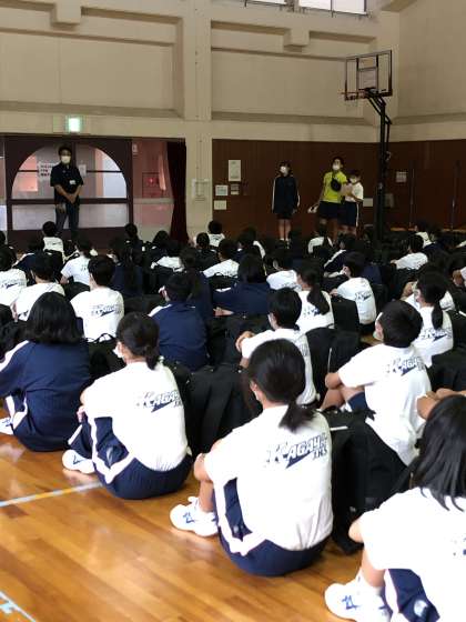 バス到着後、学級写真を撮影し、体育館での入所式です。 バス酔いが数名いましたが、みんな元気です。