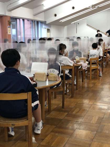 山登りと室内オリンピックでおなかはペコペコ。しっかり食べてこの後の活動に備えます。