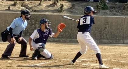 11月3日に野球部のブロック大会、決勝トーナメントの初戦が行われました。初回に先制を許しましたが3回に一挙3点を奪って逆転。最終回に1点を返され、なおもランナー2塁のピンチを切り抜け、3-2で住之江中学校に競り勝ちベスト8進出を決めました。