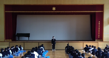 今日は亀井先生が、時間や礼,授業の受ける姿勢など、当たり前のことをきちんと継続することの大切さのお話がありました。