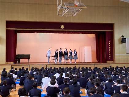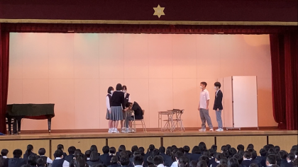 全校集会にて生徒会による寸劇が行われました。