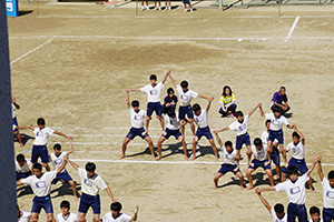 3年生の組体操は、女子のダンスと男子のHAKAに始まりました。