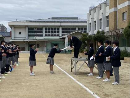 今日は全校集会がありました。 女子バスケットボール部の表彰がありました!おめでとうございます!!