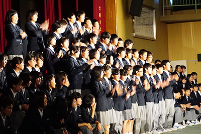 1年生はすごく元気で大きな声で発表をしてくれました。2年生は走れメロスを主題としたミュージカル風の劇を演じ切りました。3年生、63期生の思い出をつづった感動の群読でした。