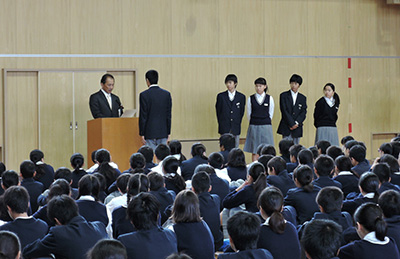 後期生徒会の新メンバーが決まりました。さっそく今日の集会で、新メンバーの発表と認証式を実施しました。認証状が手渡されると、みんなの温かい拍手が体育館中に響き渡りました。良い学校にする為に、みんなの応援をお願いします。