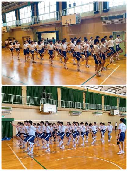 体育委員を中心に、クラスごとに息を合わせ真剣な表情で取り組んでいました。