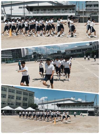 本日3〜4限、体育大会に向けて行進練習を行いました。
