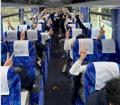 飛騨河合SAまでは疲れて寝ていましたが、休憩後のバス内の元気な様子です。