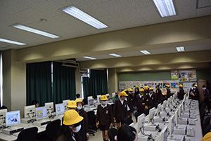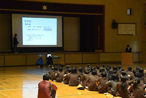 まずは体育館で、生徒会が準備してくれた学校紹介の映像を見ました。