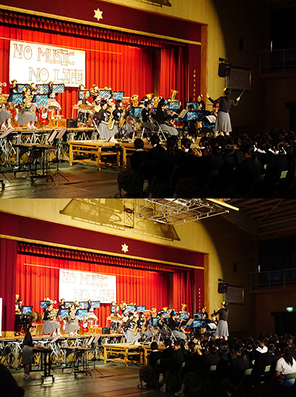 午後からは家庭科部と吹奏楽部の発表がありました。家庭科部は手作りの衣装でファッションショーを行いました。吹奏楽部の演奏はとても素晴らしく、アンコールが起こりました。