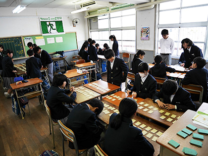 6時間目は百人一首の練習です。2月に百人一首大会を開催しますので、がんばって練習しています。百人一首を覚え、上の句の段階でとれるようになった人もいます。練習の機会はまだありますので、たくさん覚えてたくさんとってくださいね。