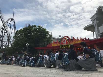予定より10分程早く、富士急ハイランドに到着しました。この後の午前中、班ごとで活動します。