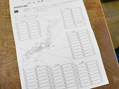 数学、国語、理科に引き続き、社会の100問テストを行いました。日本の都道府県と県庁所在地を書く問題で、結果、今回は17人が満点をとりました。クラス別では3組が健闘しました。