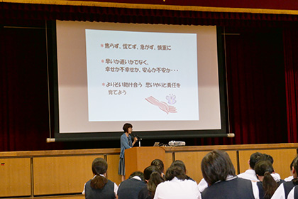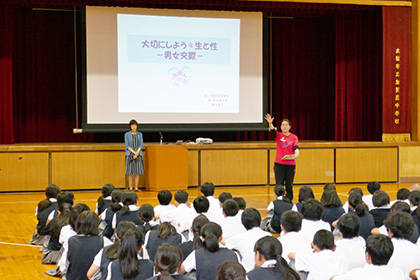 2年生を対象に、助産師会から講師の方に来ていただき、性に関する講話をしていただきました。みんなの年頃に関係する話でしたので、しっかり聞いていました。