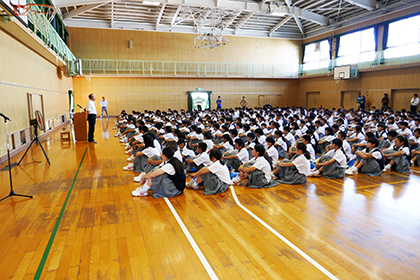 1学期の終業式を行いました。夏休みに入りますが、規則正しい生活を心がけて、始業式には元気な顔を見せてくださいね。夏休み中は学年ごとに質問日や補充学習日を設けております。また、図書室が開放されている日もありますので、活用してください。