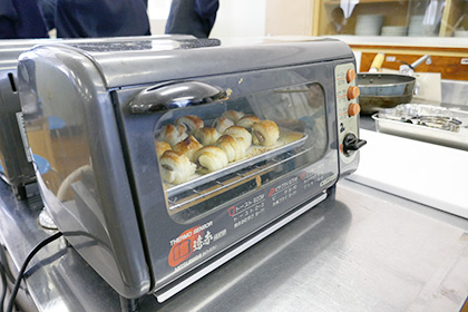 2年3組が調理実習をしていました。作っていたのはチョコパイとラスク。焦げた臭いとともに悲鳴があがっている班もありましたが無事できたのでしょうか。少しごちそうになりましたが、チョコパイ、ラスクともに美味しくできていました。