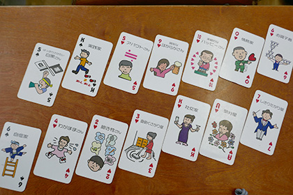 自分の性格を知り、どんな仕事が向いているのかを知るという内容で、SPトランプという、色々な性格が書かれたカードから、自分に当てはまると思うカードを選び、カードのマークの枚数で性格や向いている仕事を導き出しました。
