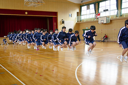 2年生はスポーツ大会を行いました。競技は、「大縄跳び」「ドッジボール」の2種目。ドッジボールは男女別でのクラス対抗と、特殊ルールを採用したクラス全員での試合を行いました。