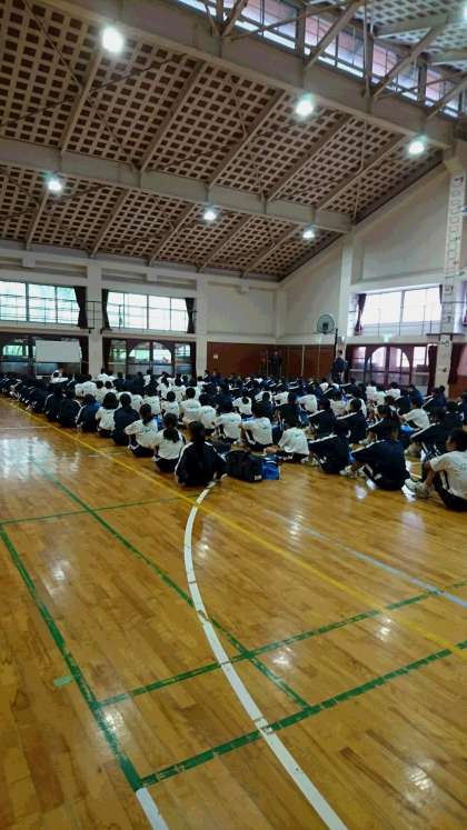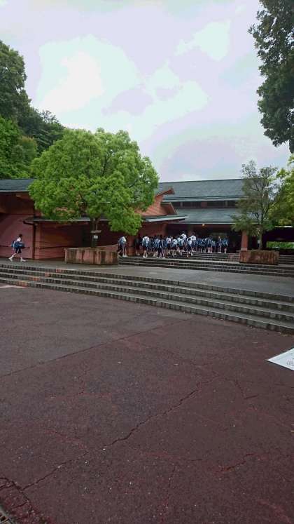 予定より少し早く、到着しました。あいにくの雨ですが、これから入所式を行い、各部屋に入ります。