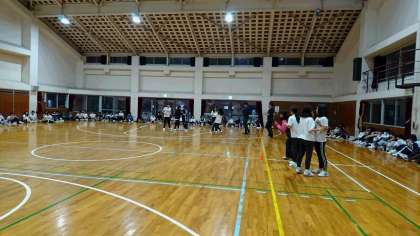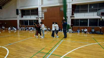 お題を見て、体育館内で4人で走って伝え、正解を競います。。