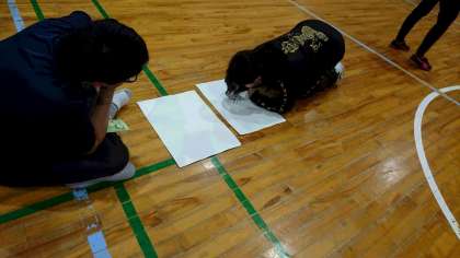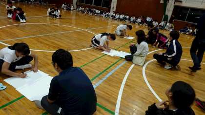 お題を見て絵を描き、次の人に見せ、さらに次の人に新しく絵を描いて伝えていきます。最後に、正解者の多さを競います。