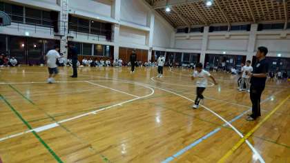 スプーンにピン球をのせてリレーをし、早さを競います。