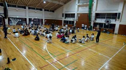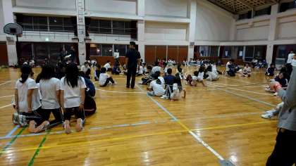 全員参加で、クイズに◯?で答え移動します。。最終残っている人数で競います。