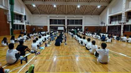 学級対抗による、レクリエーション活動が終了しました。「団結の輪を広げよう」をテーマに取り組みました。明日からの活動で、さらに仲間づくりを行っていきます。