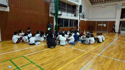 学級ごとに集まり、今日1日の振り返りを行いました。今日の反省を生かして、明日の活動を通じて、一泊移住の目的である仲間づくり、ルールを守り集団行動を心がける、自ら進んで行動する意識をもてるように、明日の活動に取り組みます。
