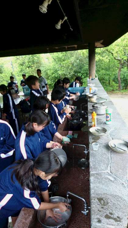 カレーを食べた後は、後片付けです。きれいに洗ってしっかり返却します。