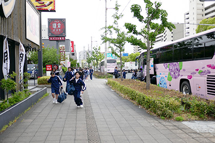 予定より少し早く、さきほどバスが到着しました。あいにくの雨模様でしたが、元気に帰ってきました。